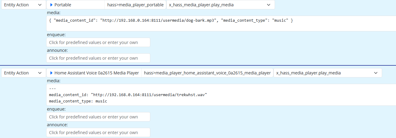 @Fanan Build 25304 has the necessary changes to support what has changed in Home Assistant. The following is an example action to play media in the new model: