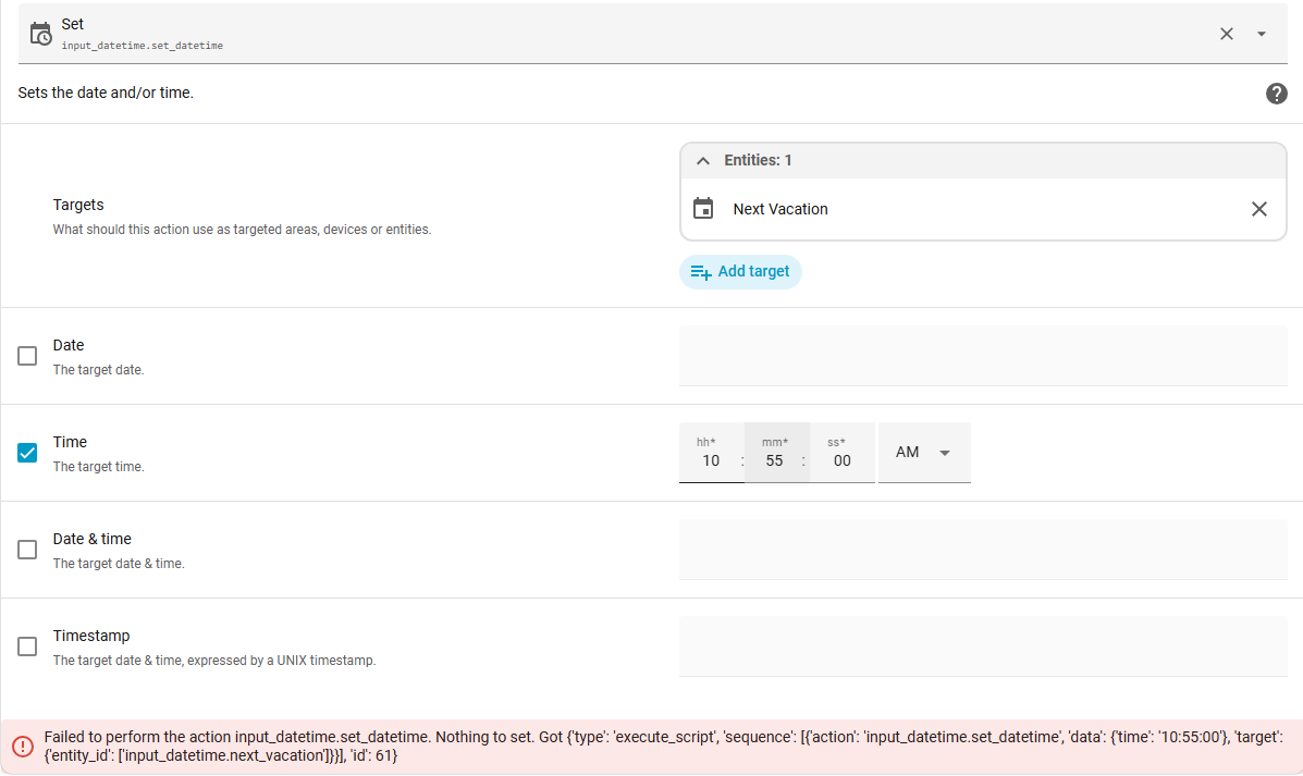 [latest-25310]2025-11-11T13:16:24.321Z <HassController:WARN> HassController#hass action x_hass_input_datetime.set_datetime({ "time": "10:45" }) on Entity#hass>input_datetime_vvb_dag failed!