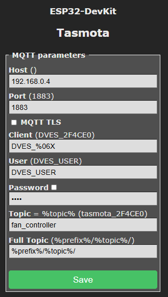 Trying to create my first Tasmota device on an ESP board. I flashed it OK setup the GPIO pins and pointed it to an new MQTT broker running on the same Linux Debian box as MSR. I followed these instructions here to install a MQTT Controller in MSR, which I can now see under Entities. My topic on the Tasmota setup I called "fan_controller" I don't see any new device coming into MSR however.