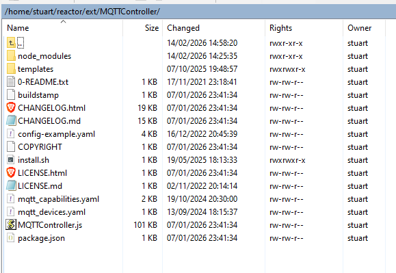 implementation: MQTTControllertoclass: MQTTControllerand it also told me to add these two lines at the top of the reactor.yaml filesystem: extension_path: /home/stuart/reactor/extI don't know if it made that up or read it somewhere, I could not see any reference to it. Anyway MSR didn't want to load the MQTT Controller into Entities when I changed it to "class" instead of "implementation".